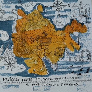 El dibujo original de la entrada a la bahia de porotocolom vista desde s´arenal, dibujado por mí, Salvador Vadell, queda plasmado en esta serie de productos, desde tazas, cuadernos o lienzos entre otros, una imagen icónica de Portocolom que todo el mundo quiere fotografiar.